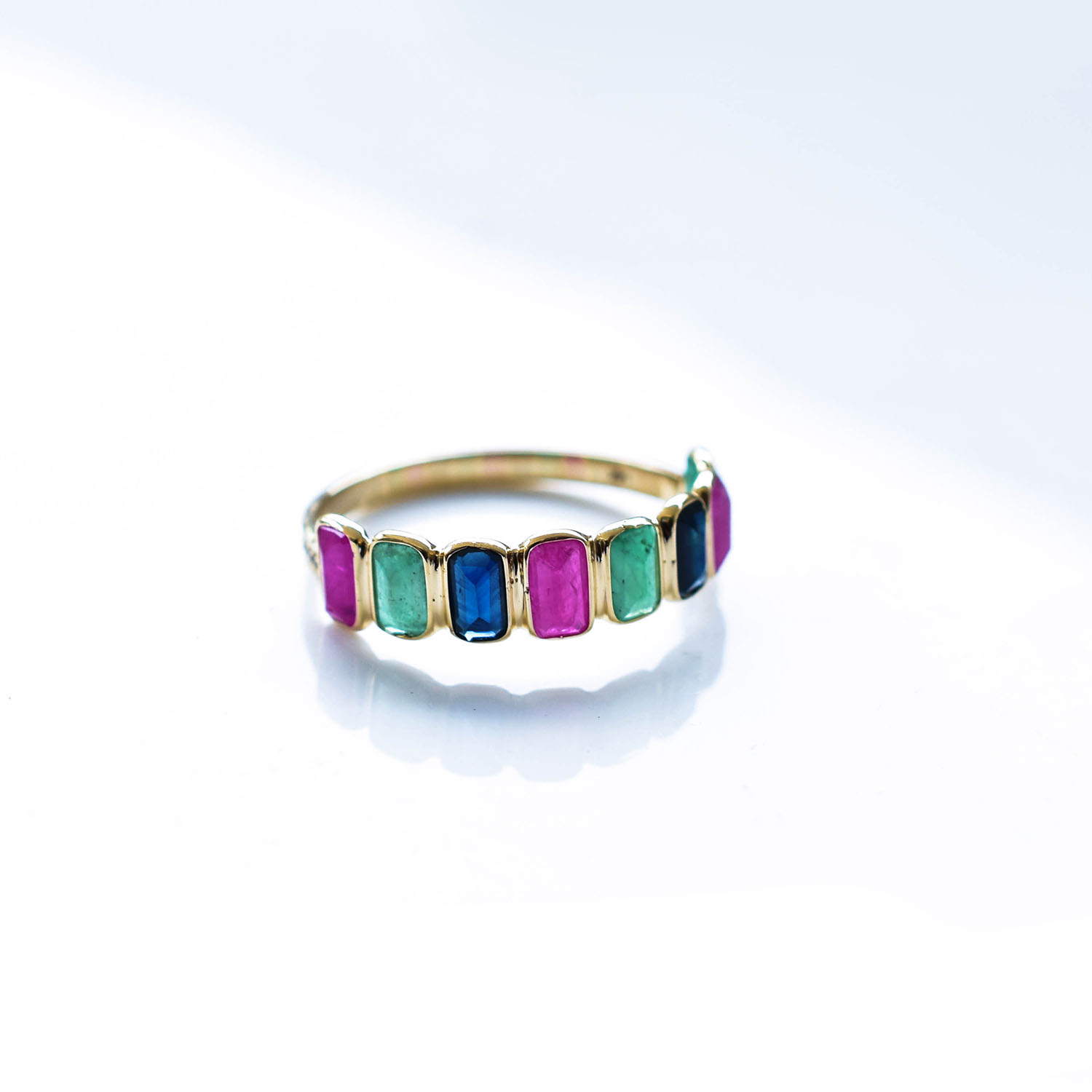 Metal :- 14K Gold Stone :- Ruby, Emerald, Blue Shapphire, Diamond CTS :- 1.05, 0.65, 0.63, 0.06